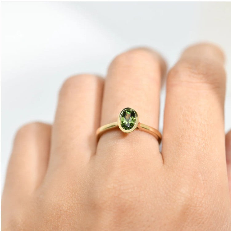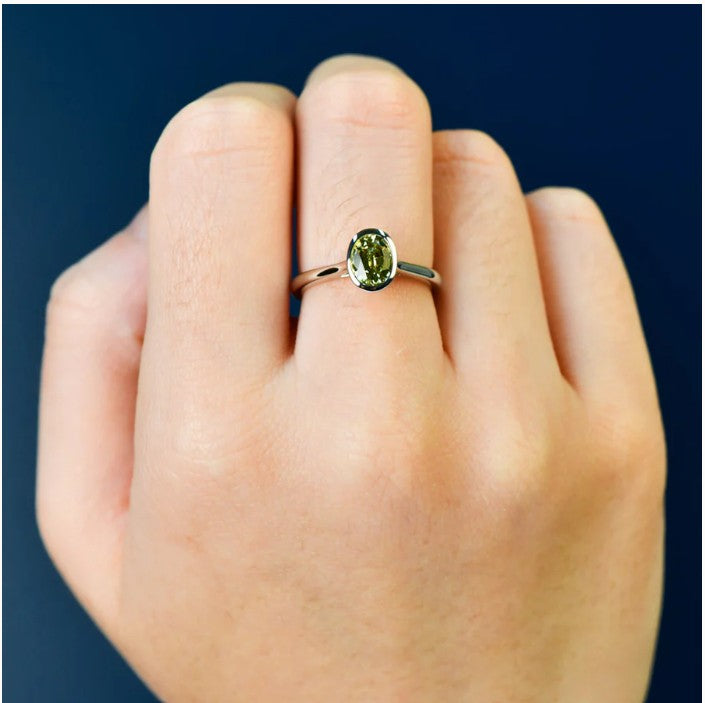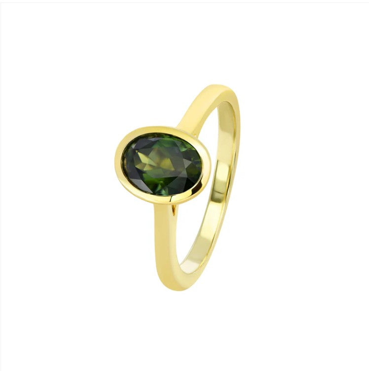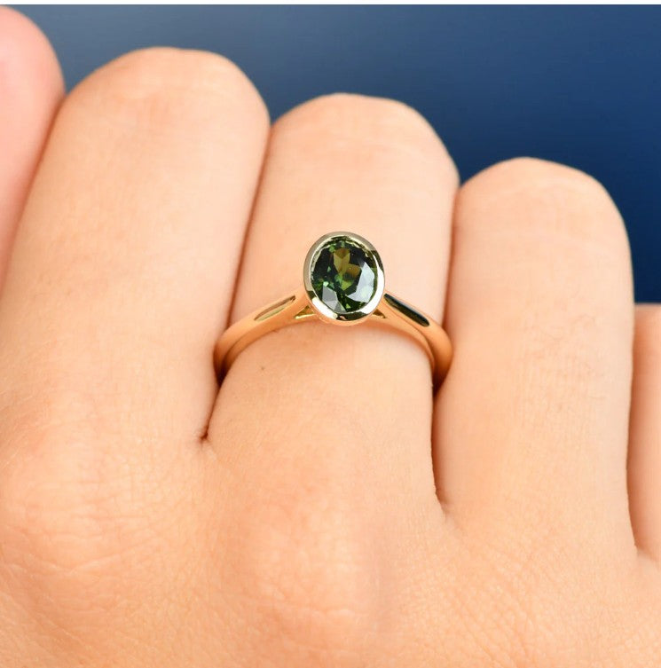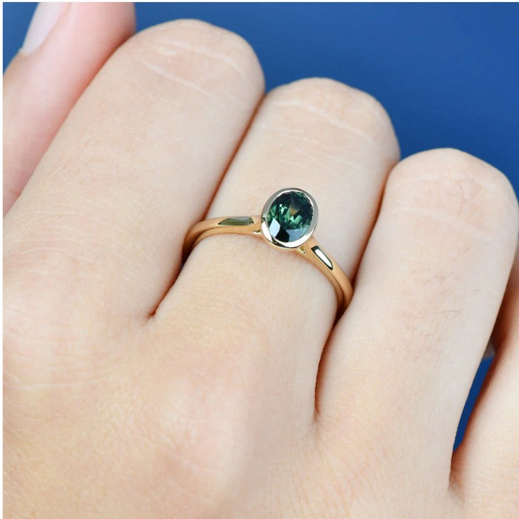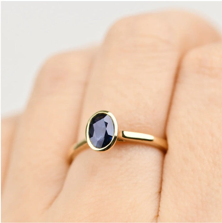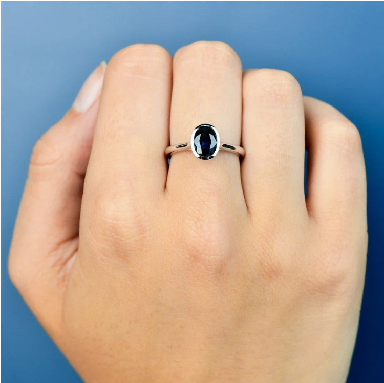 The Adelia sapphire ring features a stunning Oval Australian sapphire exquisitely set in a bezel setting. Pair this ring with its matching necklace and earrings for a seamless look.