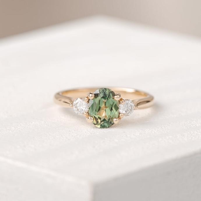 Charlotte Oval 1.47 ct Australian Light Green Sapphire Engagement Ring