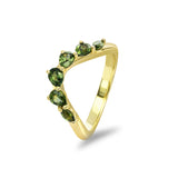 The Enya Wedder Ring showcases a graduated row of pear-cut Australian parti sapphires. Crafted in 9ct yellow gold, its contoured silhouette ensures a flawless fit, whether worn alone or stacked for layered sparkle.