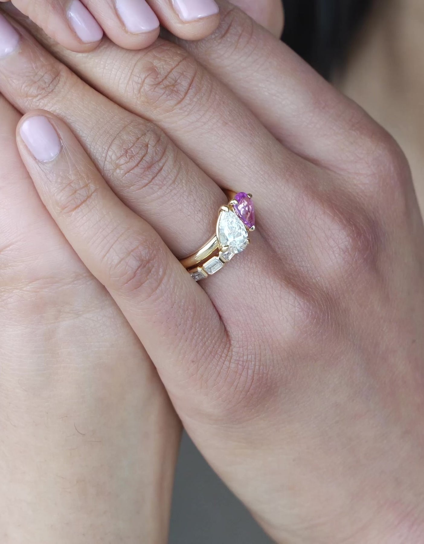 Lara Toi et Moi Pink / Purple 1.10 ct Sapphire and 1.51 ct Pear Lab Diamond Ring