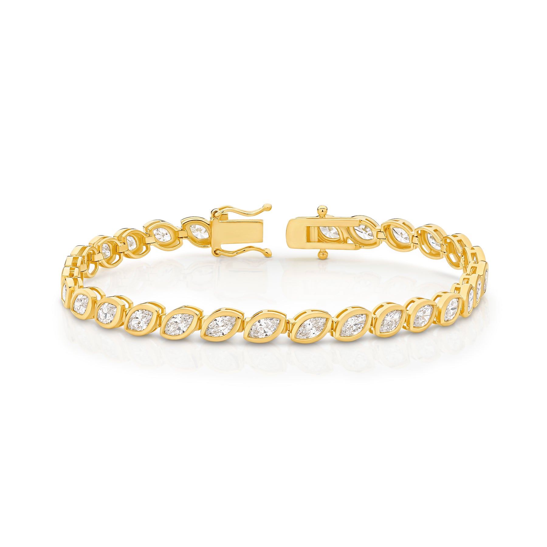 Timeless elegance meets modern simplicity. Our Bezel Diamond Bracelet showcases a series of brilliant-cut diamonds, each securely set in a smooth, polished bezel that enhances their radiant sparkle from every angle. Expertly crafted in fine gold, this refined design offers a sleek, contemporary silhouette that’s perfect for everyday luxury or effortless layering.